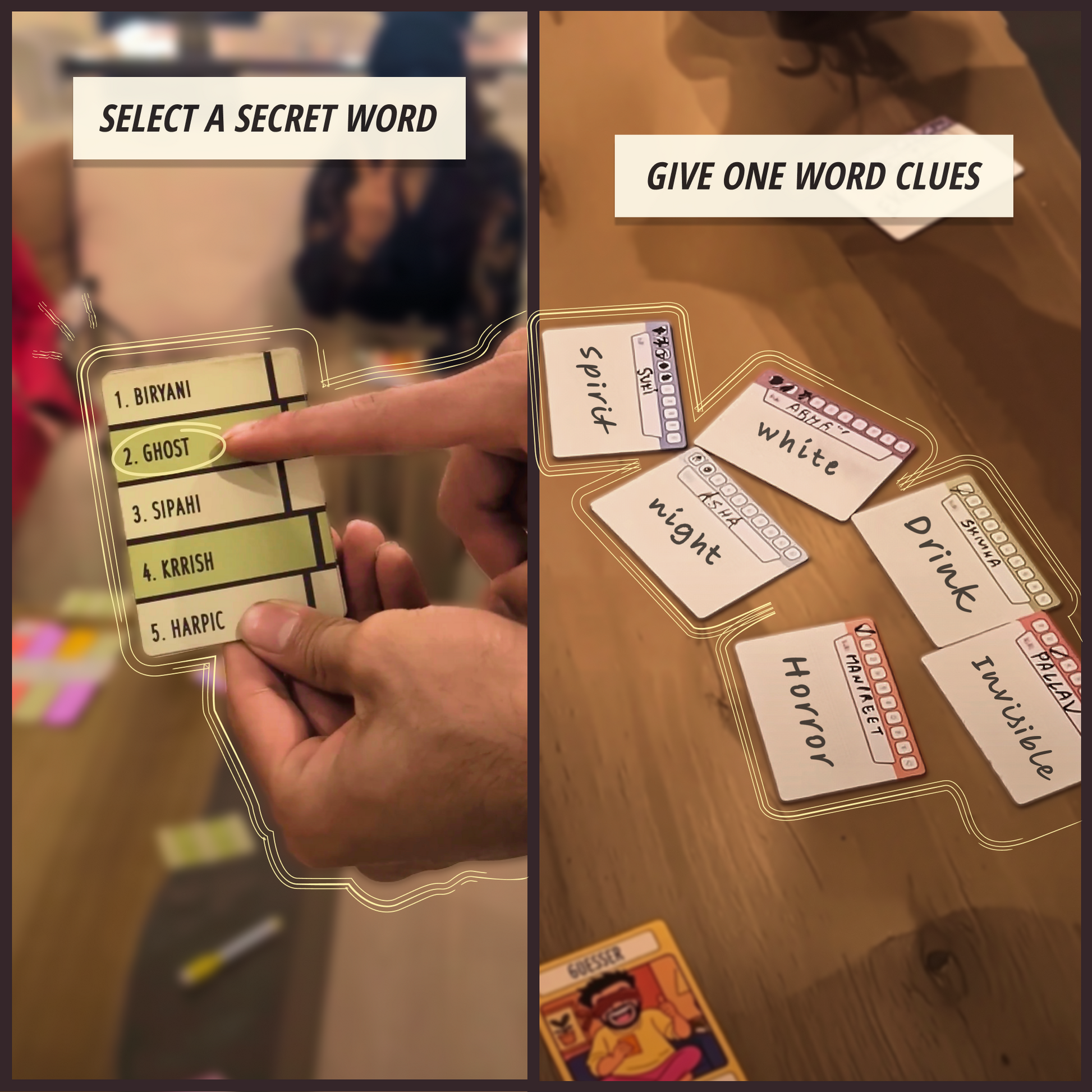 Great game. Its like a modern day version of charades. Instead of acting you have to give one word clues. It worked very well for our group. One side of the cards is Indian words and the other side is like regular english words. This allowed us to enjoy it with both our Indian and US friends. And yaa, its super easy to start and pause the game, works very well with house party settings. Totally recommend it!