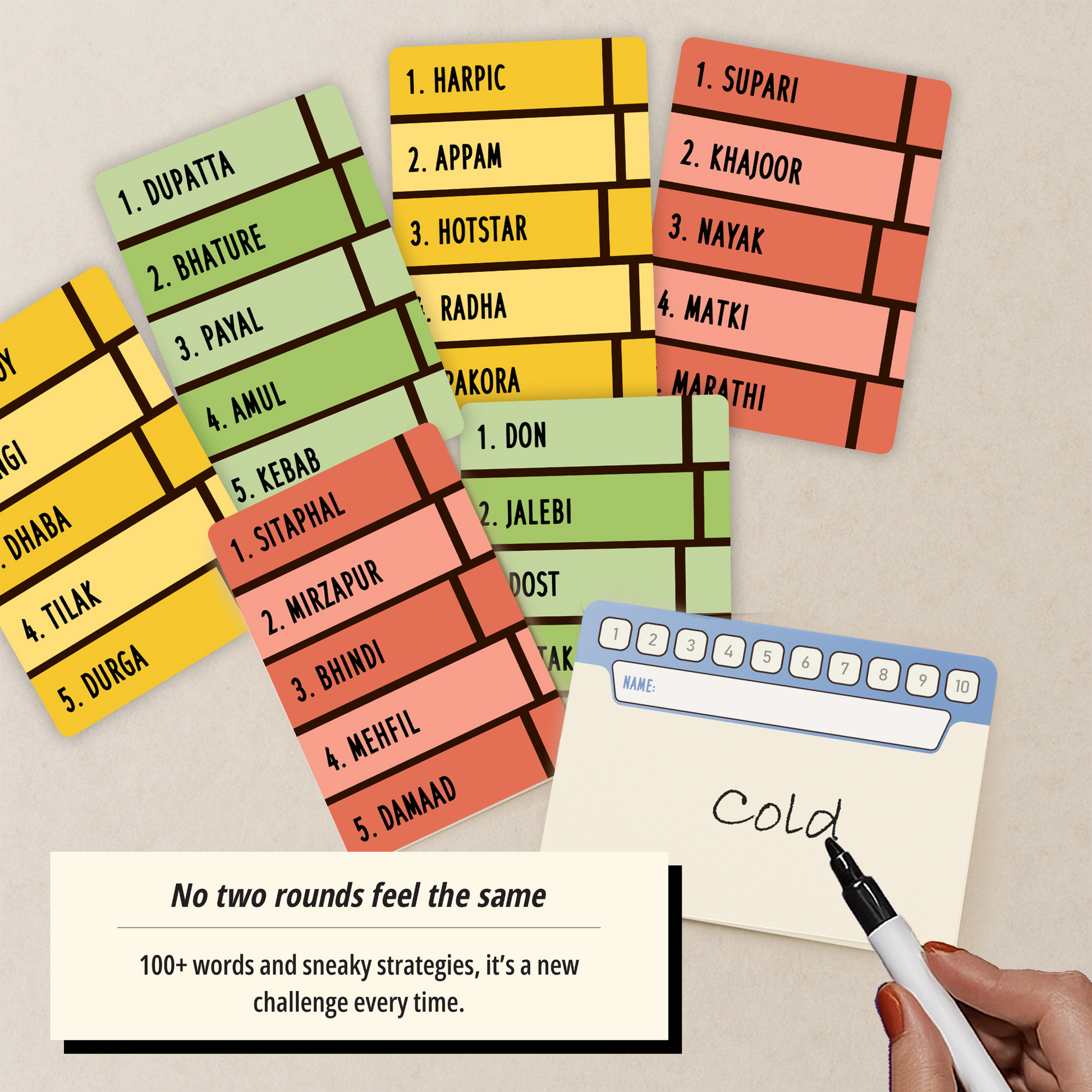 Living in Canada, I'm always looking for ways to stay connected to my roots and share our culture with my friends here. Andaaz Apna Apna has been an incredible discovery. I brought it to a potluck with a mixed group, and it was a phenomenal success. The desi words were a fun challenge for my non-Indian friends, sparking so many interesting conversations, while the English words made sure they were always included in the fun. The game is a fantastic cultural ambassador, wrapped in a package of pure fun and laughter. It's more than just a game for me; it’s a little piece of home. Thank you DBG! :)